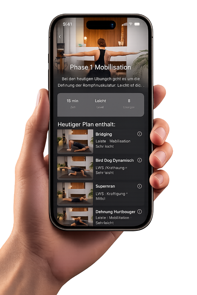 Nein. Off & Born AUFRECHT ersetzt keine ärztliche oder therapeutische Behandlung, sondern begleitet dein eigenständiges Rückentraining.